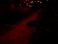 Description: Our neighbor's house, the snow has formed a tunnel over the porch, and buried the Christmas decorations on the lawn. |