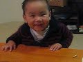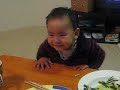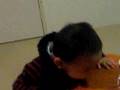 Description: My son sipping from the table. |